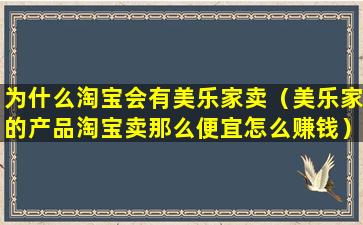 为什么淘宝会有美乐家卖(美乐家的产品淘宝卖那么便宜怎么赚钱)