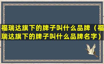 福瑞达旗下的牌子叫什么品牌(福瑞达旗下的牌子叫什么品牌名字)