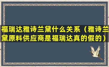 福瑞达雅诗兰黛什么关系(雅诗兰黛原料供应商是福瑞达真的假的)