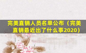 完美直销人员名单公布(完美直销最近出了什么事2020)