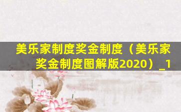 美乐家制度奖金制度(美乐家奖金制度图解版2020)