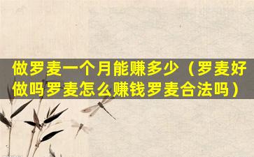 做罗麦一个月能赚多少(罗麦好做吗罗麦怎么赚钱罗麦合法吗)