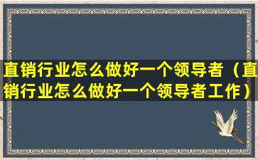 直销行业怎么做好一个领导者(直销行业怎么做好一个领导者工作)