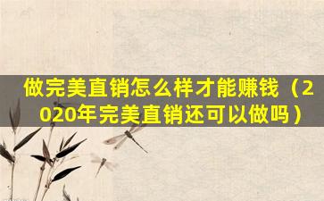 做完美直销怎么样才能赚钱(2020年完美直销还可以做吗)