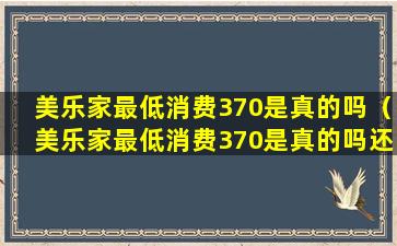美乐家最低消费370是真的吗(美乐家最低消费370是真的吗还是假的)