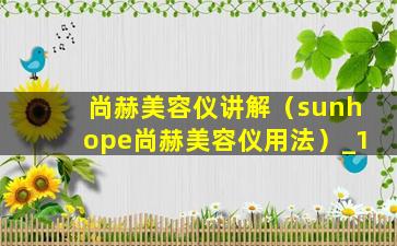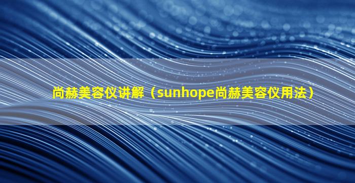 尚赫美容仪讲解(sunhope尚赫美容仪用法)