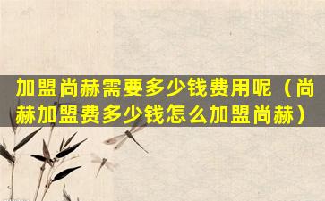 加盟尚赫需要多少钱费用呢(尚赫加盟费多少钱怎么加盟尚赫)