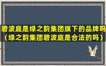 碧波庭是绿之韵集团旗下的品牌吗(绿之韵集团碧波庭是合法的吗)
