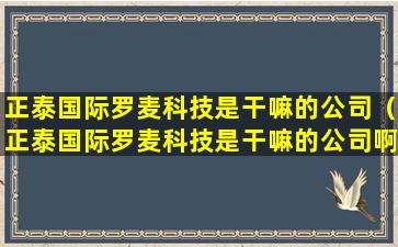 正泰国际罗麦科技是干嘛的公司(正泰国际罗麦科技是干嘛的公司啊)