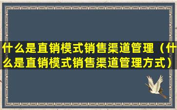 什么是直销模式销售渠道管理(什么是直销模式销售渠道管理方式)