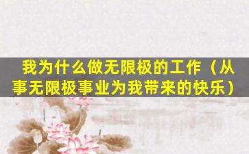 我为什么做无限极的工作(从事无限极事业为我带来的快乐)