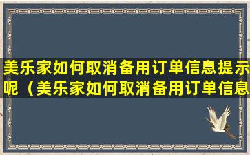 美乐家如何取消备用订单信息提示呢(美乐家如何取消备用订单信息提示呢视频)