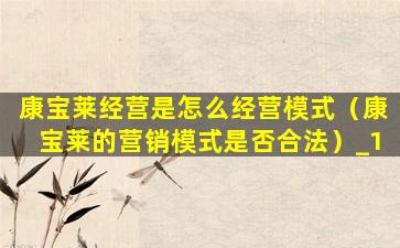 康宝莱经营是怎么经营模式(康宝莱的营销模式是否合法)