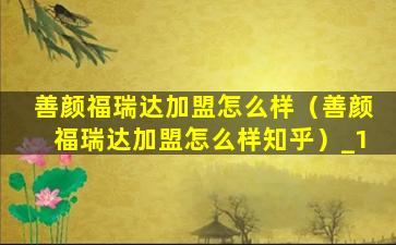 善颜福瑞达加盟怎么样(善颜福瑞达加盟怎么样知乎)