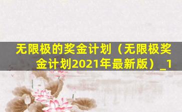 无限极的奖金计划(无限极奖金计划2021年最新版)