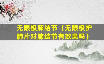 无限极肺结节(无限极护肺片对肺结节有效果吗)