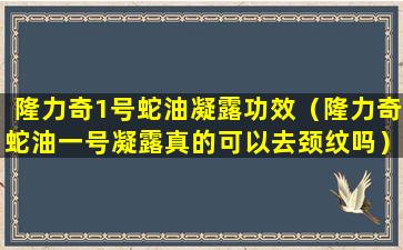 隆力奇1号蛇油凝露功效(隆力奇蛇油一号凝露真的可以去颈纹吗)