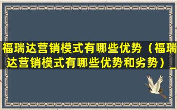 福瑞达营销模式有哪些优势(福瑞达营销模式有哪些优势和劣势)