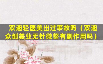 双迪轻医美出过事故吗(双迪众创美业无针微整有副作用吗)