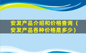 安发产品介绍和价格查询(安发产品各种价格是多少)