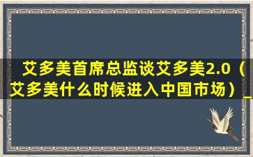 艾多美首席总监谈艾多美2.0(艾多美什么时候进入中国市场)