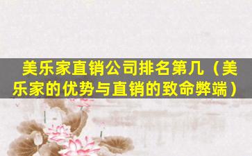 美乐家直销公司排名第几(美乐家的优势与直销的致命弊端)