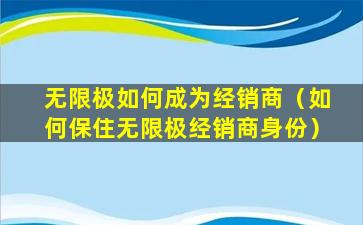无限极如何成为经销商(如何保住无限极经销商身份)