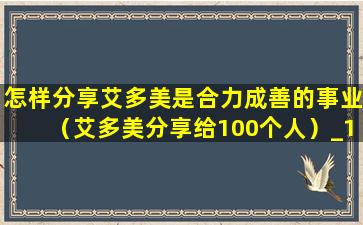 怎样分享艾多美是合力成善的事业(艾多美分享给100个人)