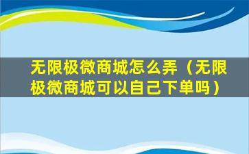 无限极微商城怎么弄(无限极微商城可以自己下单吗)