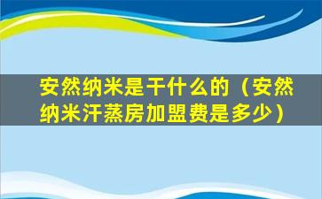 安然纳米是干什么的(安然纳米汗蒸房加盟费是多少)