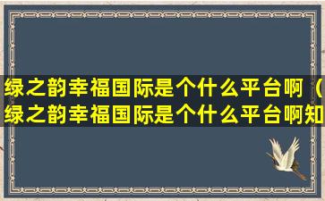 绿之韵幸福国际是个什么平台啊(绿之韵幸福国际是个什么平台啊知乎)