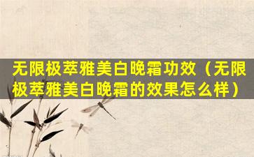 无限极萃雅美白晚霜功效(无限极萃雅美白晚霜的效果怎么样)