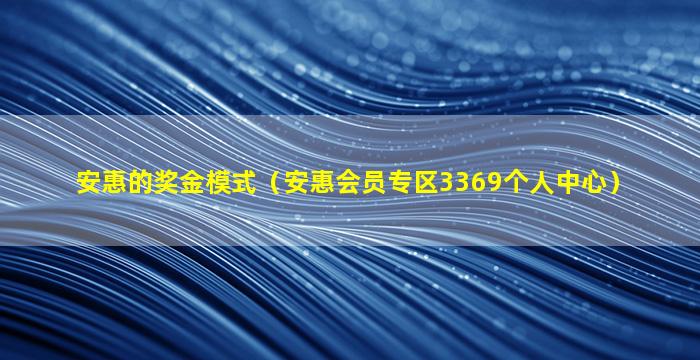 安惠的奖金模式(安惠会员专区3369个人中心)