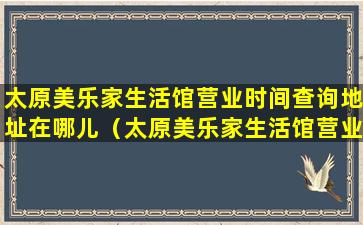 太原美乐家生活馆营业时间查询地址在哪儿(太原美乐家生活馆营业时间查询地址在哪儿啊)