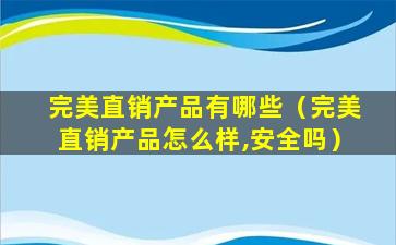 完美直销产品有哪些(完美直销产品怎么样,安全吗)