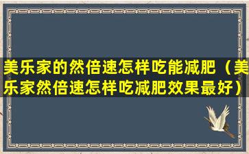 美乐家的然倍速怎样吃能减肥(美乐家然倍速怎样吃减肥效果最好)