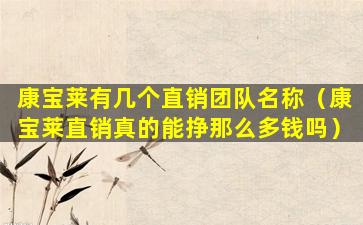 康宝莱有几个直销团队名称(康宝莱直销真的能挣那么多钱吗)