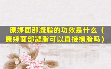 康婷面部凝脂的功效是什么(康婷面部凝脂可以直接擦脸吗)