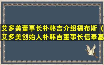 艾多美董事长朴韩吉介绍福布斯(艾多美创始人朴韩吉董事长信奉基督教异端吗)