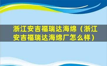 浙江安吉福瑞达海绵(浙江安吉福瑞达海绵厂怎么样)