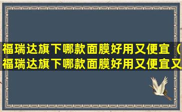 福瑞达旗下哪款面膜好用又便宜(福瑞达旗下哪款面膜好用又便宜又安全)