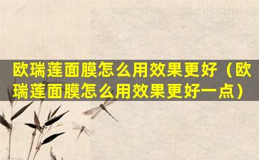 欧瑞莲面膜怎么用效果更好(欧瑞莲面膜怎么用效果更好一点)