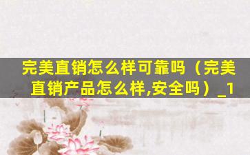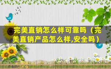 完美直销怎么样可靠吗(完美直销产品怎么样,安全吗)