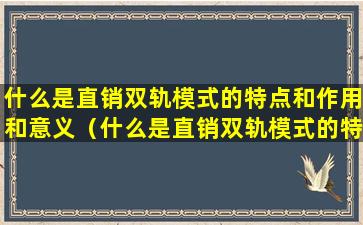 什么是直销双轨模式的特点和作用和意义(什么是直销双轨模式的特点和作用和意义的区别)