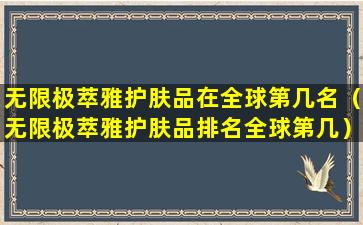 无限极萃雅护肤品在全球第几名(无限极萃雅护肤品排名全球第几)