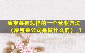 康宝莱是怎样的一个营业方法(康宝莱公司是做什么的)