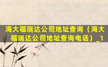 海大福瑞达公司地址查询(海大福瑞达公司地址查询电话)