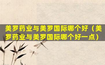 2、美罗药业与美罗国际哪个好一点