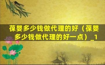葆婴多少钱做代理的好(葆婴多少钱做代理的好一点)