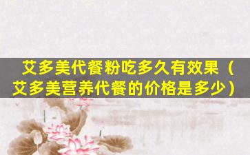 艾多美代餐粉吃多久有效果(艾多美营养代餐的价格是多少)